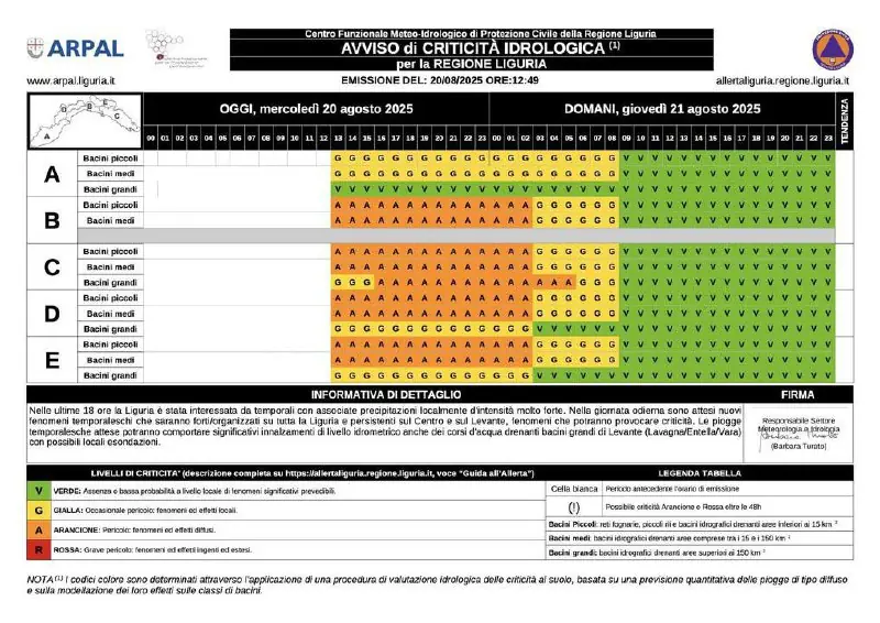 AGGIORNAMENTO: lo stato di ALLERTA ARANCIONE è stato prolungato fino alla notte di domani 21 agosto alle ore 3. Prestare...